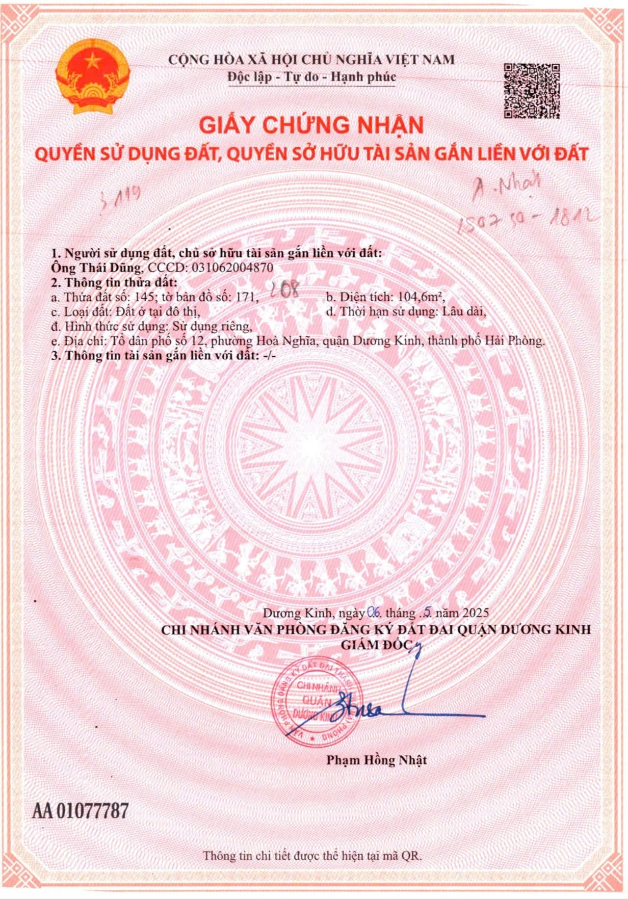 | Tên dự án: 1.3xx tỷ 104m2 Hòa Nghĩa Dương Kinh Zalo 0567222555 | ||