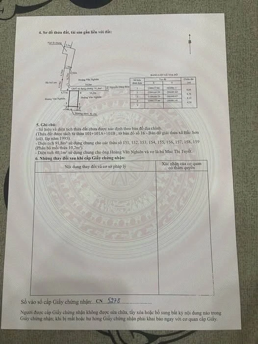 - Địa chỉ cụ thể: 2 lô đất Bắc Sơn 41m2 ngõ 2,5