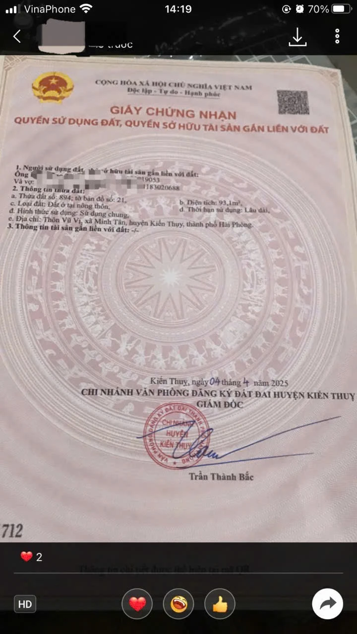 | Tên dự án: 2,0x tỷ 93,1m2 Mặt đường 401 Vũ Vị – Minh Tân – Kiến Thụy Zalo 0567222555 | ||