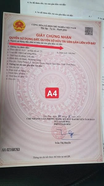IÁ 6XX E CÒN DUY NHẤT 1 LÔ DT 100m2, full thổ cư tại Nhân Lý- Tam Quan- Tam Đảo.