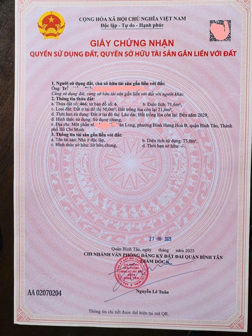 | Chiều rộng: 0 m | Chiều dài: 0 m | Giấy tờ: Sổ Hồng |