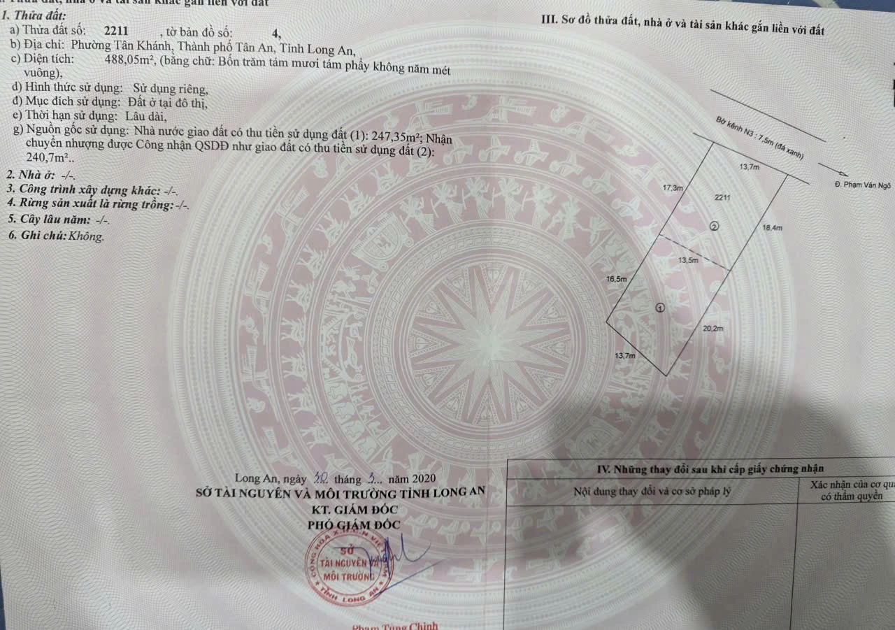 | Tên dự án: Cần bán lô đất thổ cư mặt tiền đường đan bờ kênh N3, Phường Tân Khánh, Thành Phố Tân An, Long An(Cũ) | ||