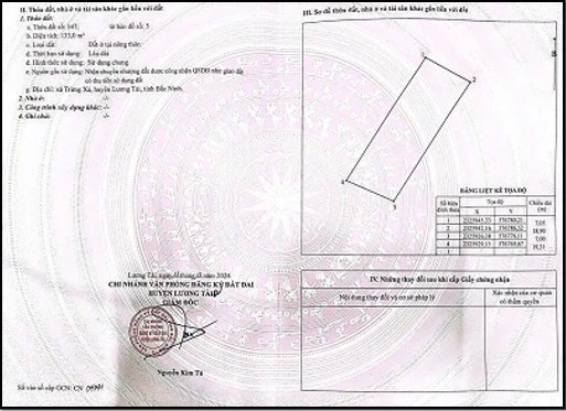 ⭐️Chính chủ bán đất sẵn sổ MT ô tô tránh gần sân bay Gia Bình, Bắc Ninh, chỉ 1,6 tỷ. 0989942828 Thông tin thửa đất: – Vị trí: Thôn Trừng Xá, xã Trung Chính (H.Lương Tài), tỉnh Bắc Ninh (nay là xã Trung Chính, tỉnh Bắc Ninh). Cách đường tỉnh lộ 50m. – Diện tích: 133m²; mặt tiền = hậu = 7m. – Tiện ích: Gần trường học cấp 1, 2; Gần khu quy hoạch tái định cư sân bay Gia Bình; Gần kho cảng hàng không; Gần khu công nghiệp. Cách thị trấn Thứa 3km; Cách cầu Kênh Vàng 4km. Giao thông kết nối Gia Bình – Thuận Thành – Hà Nội; Hài Dương – Hưng Yên. – Pháp lý: Sổ đỏ sẵn sàng giao dịch. ------------------ – Giá: 1,6 tỷ (có thương lượng với khách hàng thiện chí).