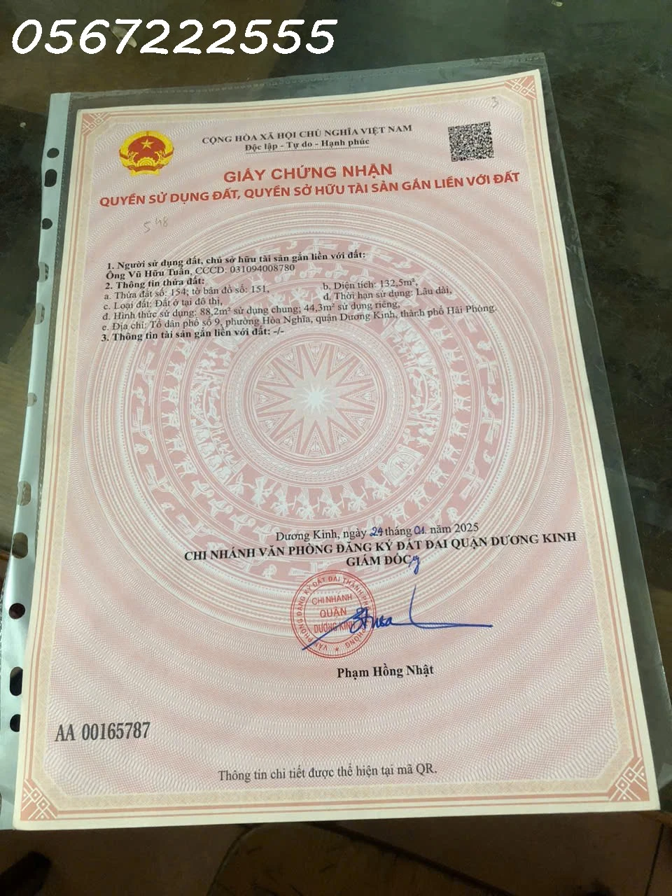 Chính chủ bán mảnh đất vuông vắn, vị trí đẹp Tại Tổ 9 Hoà Nghĩa - Dương Kinh.