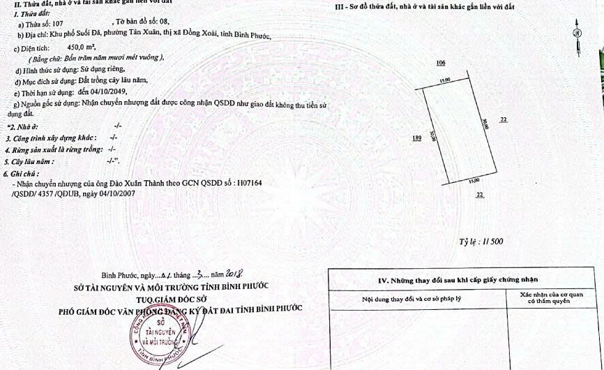 | Tên dự án: Chính Chủ Cần bán 02 lô đất liền kề, tổng diện tích 900m2, tại Suối Đá, P. Tân Xuân, TP. Đồng Xoài, Bình Phước. | ||