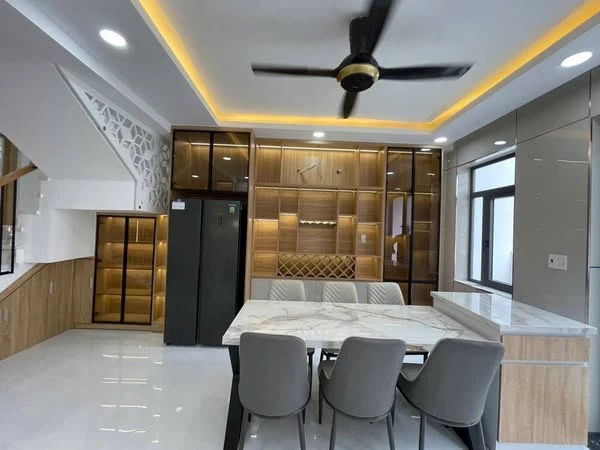 Công năng nhà gồm 1trệt 3lầu 4 phòng ngủ 4wc 1phòng khách phòng thờ 1 nhà bếp 1 sân phơi 1 phách dưới để xe hơi nhà đã trang bị Nội thất cao cấp