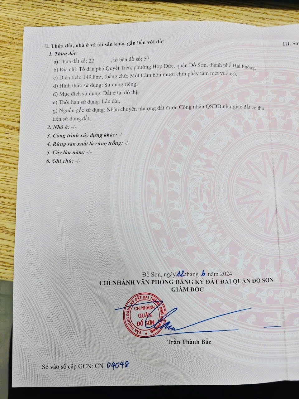 Lô đất mặt đường TDP Quyết Tiến - Hợp Đức diện tích rộng - ZALO 0567 222 555 -Diện tích: 149.8m2 -Mặt tiền: 6.0m -Đường/ngõ: Mặt đường chính TDP Quyết Tiến, đường nhựa rộng rãi mới nâng cấp -Vị trí: Tổ dân phố Quyết Tiến, phường Hợp Đức, quận Đồ Sơn, Hải Phòng -Tiện ích: Gần chợ Quyết Tiến, khu dân cư đông đúc, thuận tiện kinh doanh hoặc làm kho xưởng -Pháp lý: Sổ hồng chính chủ, đất ở tại đô thị (GCN cấp năm 2024) -Giá: 2.5x tỷ -Tiềm năng: Vị trí mặt đường lớn có dư địa tăng giá cao, phù hợp đa mục đích sử dụng -Liên hệ để nhận thông tin quy hoạch chi tiết và xem đất NHÀ ĐẤT ANH MINH 782 Phạm Văn Đồng, Dương Kinh, Hải Phòng Trọng Điểm: Dương Kinh • Đồ Sơn • Kiến Thụy SĐT/ZALO: 0567 222 555 -Thông tin mang tính tham khảo tại thời điểm đăng. Xin vui lòng kiểm tra thực tế. #batdongsanhp #nhadathaiphong #bandatdoson #hopduc #quyettien |