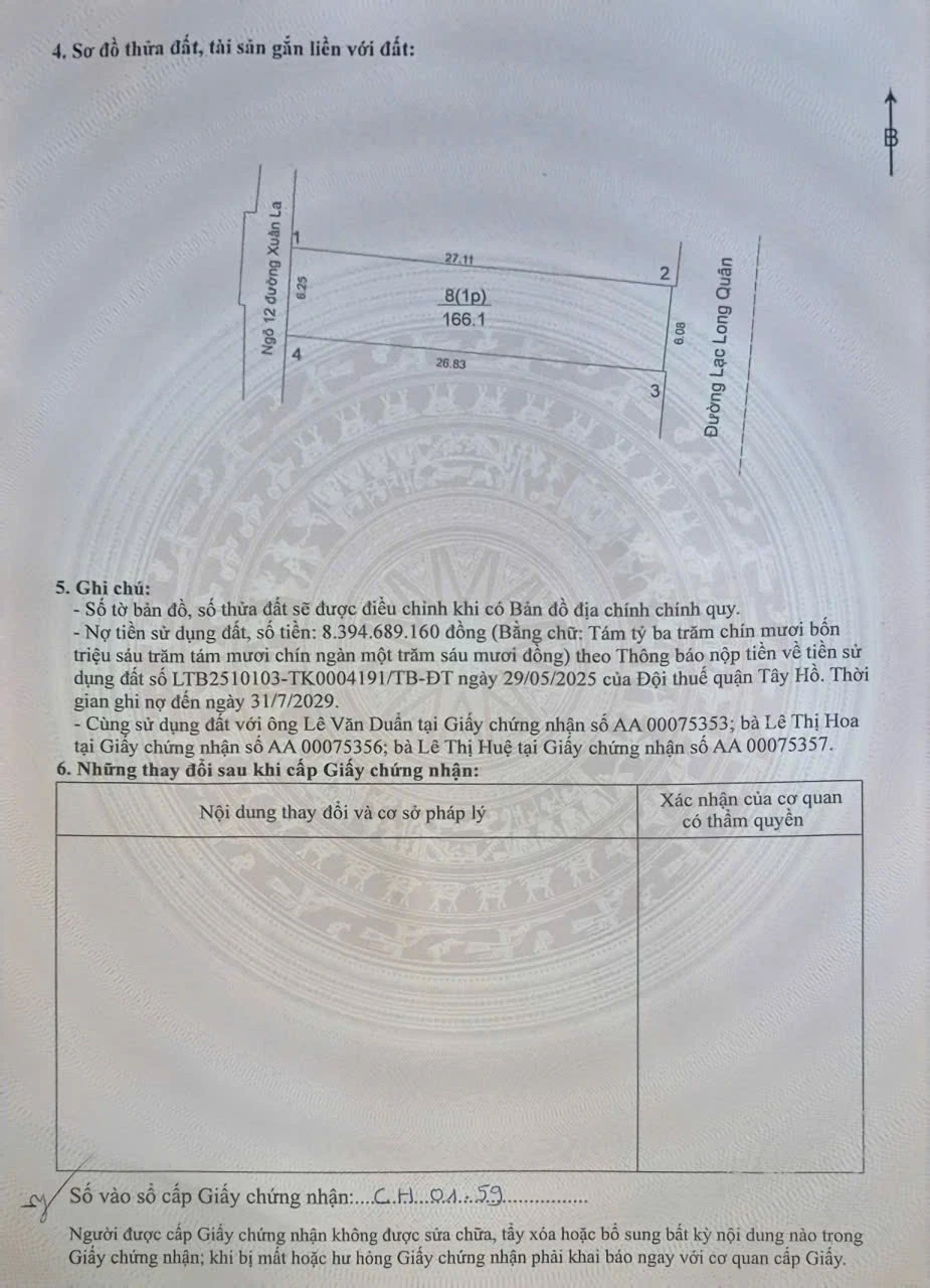 | Tên dự án: MẢNH ĐẤT, MẶT PHỐ, LẠC LONG QUÂN, TÂY HỒ-VỈA HÈ-KD-Ô TÔ: 166M, MT 6,1M, GIÁ 85,9 TỶ. | ||