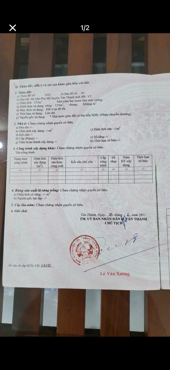 | Chiều rộng: 0 m | Chiều dài: 0 m | Giấy tờ: Sổ Hồng |