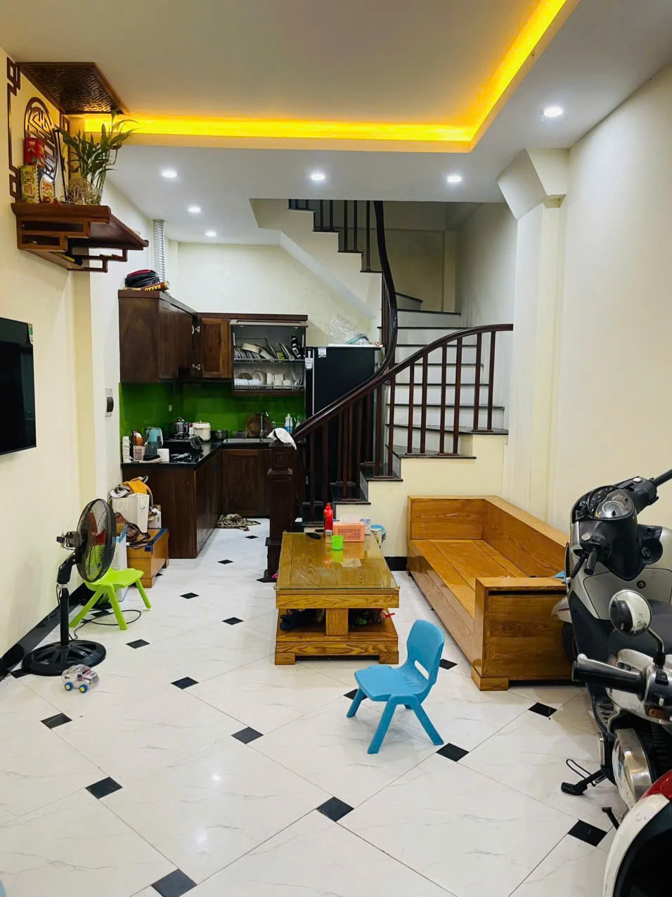 • Mặt ngõ rộng, ô tô đỗ cửa thoải mái • Hai thoáng vĩnh viễn – phòng nào cũng sáng • Tầng 1: Khách + bếp • Tầng 2–4: Mỗi tầng 1 phòng ngủ rộng + WC khép kín • Tầng 5: 1 phòng + sân phơi • Tầng tum: Phòng đa năng / kho ➡ Ngõ thông, kinh doanh nhỏ, văn phòng đều hợp 👉 Nhà còn rất mới – xách vali về ở luôn |