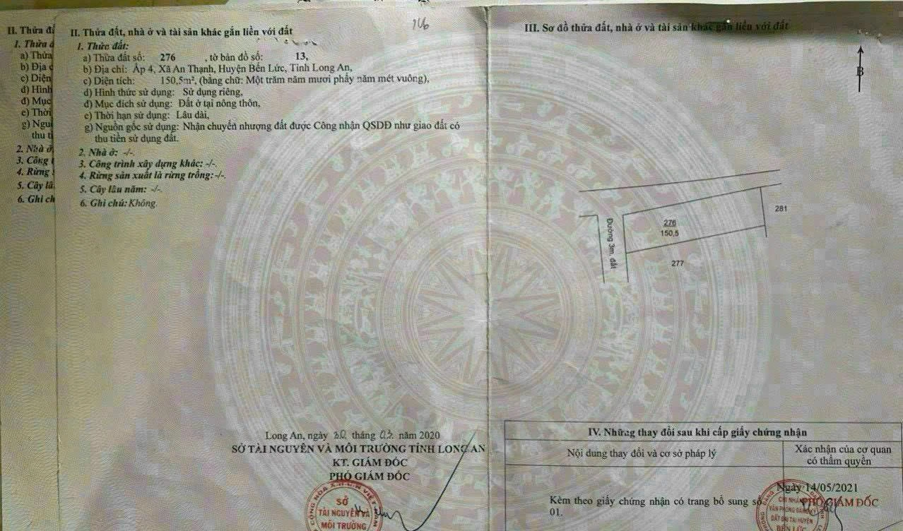 SỞ HỮU NGAY ĐẤT THỔ CƯ - GIÁ TỐT - Vị Trí Đắc Địa Tại BẾN LỨC – Ấp 4, An Thạnh – sát KDC Nam Long & Waterpoin