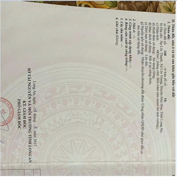 BÁN ĐẤT CHÍNH CHỦ – SỔ HỒNG RIÊNG – ĐỨC HÒA, LONG AN * Địa chỉ: Ấp Lộc Thạnh, Xã Lộc Giang, Đức Hòa, Long An ( Cách KCN Thành Thành Công chỉ 3 phút đi xe, Gần chợ Lộc Giang (2 phút), Gần chợ chiều công nhân, đông đúc, tiện buôn bán) * Diện tích: 483m2 - FULL THỔ CƯ 100% * Pháp lý: Sổ hồng riêng, sang tên công chứng ngay - Đất đẹp, vuông vức, không dính quy hoạch - Đường trước đất rộng, xe hơi vào tận nơi - Khu dân cư hiện hữu, an ninh, thích hợp xây nhà ở hoặc đầu tư * Giá bán: 4,1 tỷ ( thương lượng nhẹ cho khách thiện chí) Liên hệ chính chủ: 0901137879 * Hỗ trợ xem đất trực tiếp – giá tốt khu vực - ưu tiên khách thiện chí chốt nhanh, |
