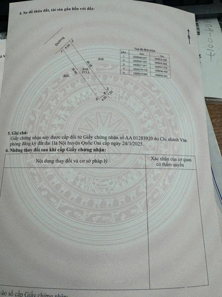 | Tên dự án: BÁN LÔ ĐẤT GẦN NHÀ MÁY IN TIỀN DT 213M2 TẠI THÔN 5 SÁT KHU TT HÀNH CHÍNH XÃ PHÚ CÁT, GIÁ CHỈ 3XTR/M2 | ||
