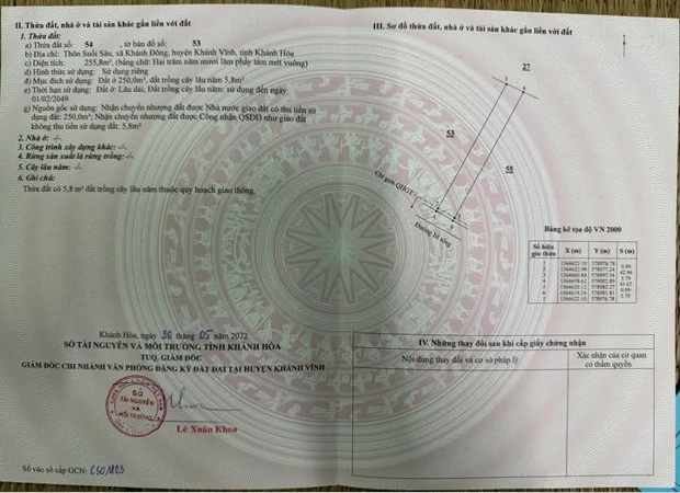 ⭐️Chính chủ bán đất Suối Sâu, Khánh Vĩnh, Khánh Hòa, chỉ 600tr; 0363192570 *Địa chỉ: Thôn Suối Sâu, Xã Khánh Đông, Huyện Khánh Vĩnh, Khánh Hòa (Thuộc khu Xã Bắc Khánh Vĩnh – Khánh Hòa mới) *Diện tích: 255 m² *Tổng giá: 600 triệu (chỉ: ~2,35 triệu/m²) *Vị trí đẹp: -Đất gần khu dân cư hiện hữu -Gần chợ, thuận tiện sinh hoạt -Gần đường Quốc lộ 18, di chuyển dễ dàng -Phù hợp xây nhà ở, đầu tư lâu dài ------------------- *Tổng giá: 600 triệu (chỉ: ~2,35 triệu/m²)