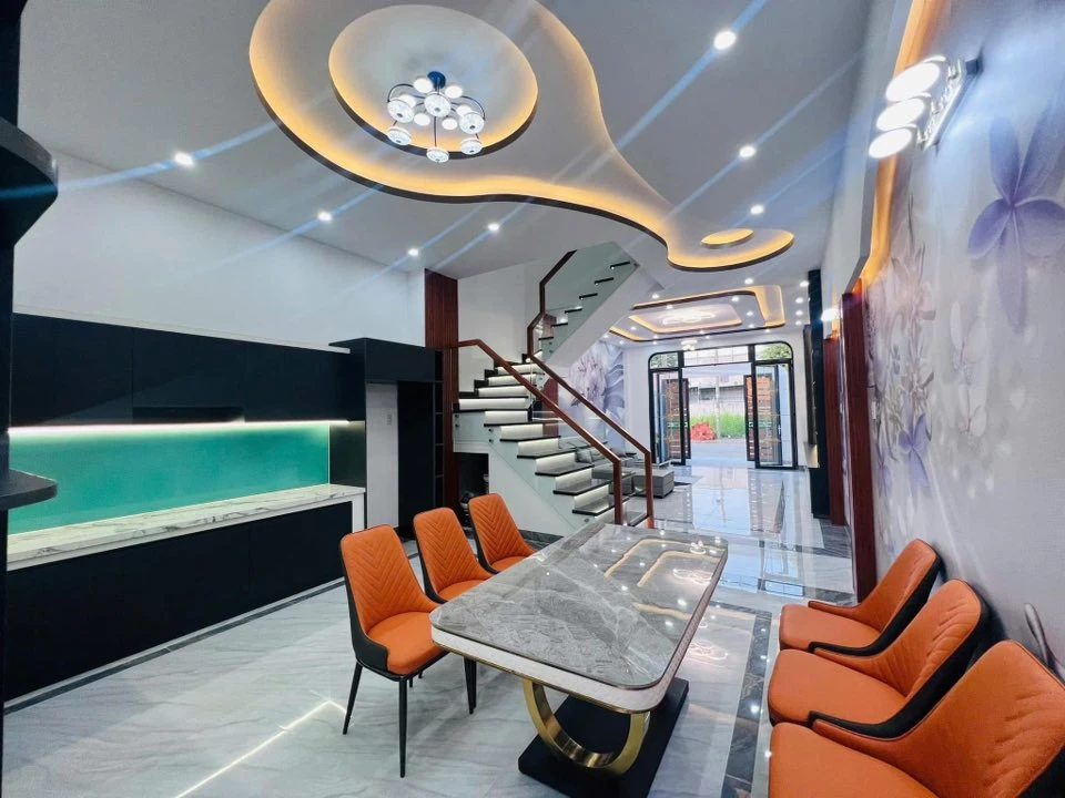 Kết cấu: 1 trệt 2 lầu gồm 3 phòng ngủ, 4 nhà vệ sinh, phòng khách, bếp, sân thượng + sân sau thoáng mát.