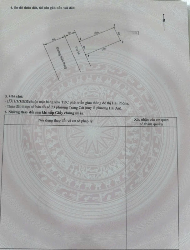Lô đất nằm trong khu tái định cư Tràng Cát – quận Hải An, khu quy hoạch đồng bộ, đường rộng thông thoáng, phù hợp xây nhà ở lâu dài hoặc đầu tư đón sóng hạ tầng khi khu vực Tràng Cát đang phát triển mạnh. Vị trí đất thuận lợi kết nối nhanh ra đường Vành đai 2, gần các khu công nghiệp lớn và khu đô thị đang phát triển. Khu vực xung quanh có nhiều dự án trọng điểm như khu công nghiệp VinFast, KCN Nam Tràng Cát và khu nhà ở xã hội Vin, tạo lực đẩy lớn cho giá trị bất động sản trong thời gian tới. Khu dân cư văn minh, hạ tầng hoàn thiện, đường nội bộ rộng rãi, ô tô đi lại thuận tiện. Phù hợp xây nhà ở, mở văn phòng hoặc đầu tư giữ tài sản. Thông tin lô đất