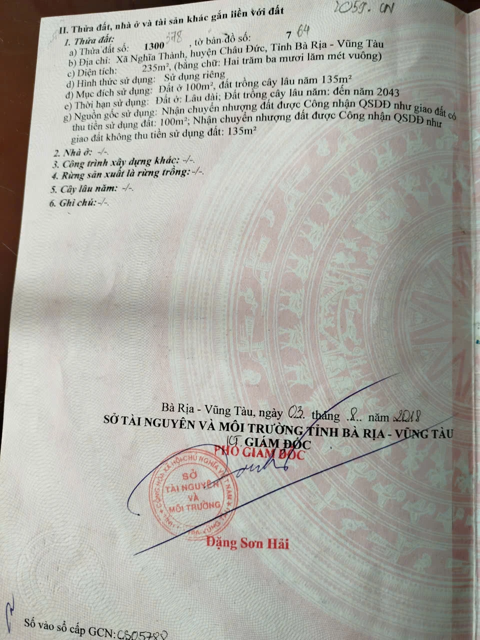 | Chiều rộng: 0 m | Chiều dài: 0 m | Giấy tờ: Sổ Hồng |