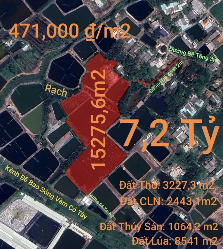 Bán lô đất thổ lúa vườn không dính quy hoạch giá 7,2 tỷ 🌏Vị trí nằm khu vực ấp Bình Lợi, xã Vàm Cỏ, Tỉnh Tây Ninh ✅ Tổng diện tích : 15275,6m2 ✅ Đất Thổ: 3227,3m2 ✅ Đất CLN: 2443,1m2 ✅ Đất Thủy Sản: 1064,2m2 ✅ Đất Lúa: 8541m2 ✅ Cách đường Tỉnh Lộ 833 1,1 km ✅ Cách UBND huyện tân trụ 3,6 km ✅ Cách Quốc Lộ 50B: 2,2km ✅Hướng Đông ✅ Đường vào khu đất rộng 2,5m, mặt bê tông 1m ✅ Đất nằm vị trí đẹp, không dính quy hoạch, khu vực yên tĩnh, hiện tại đang nuôi cá,thích hợp mô hình nuôi tôm, kinh doanh thủy sản, đầu tư sinh lời, vay vốn ngân hàng 📌Toạ độ: 10.488686,106.510325 ✅Pháp lý rõ ràng , thương lượng chính chủ ✅Giá bán 7,2 tỷ (471,000₫/m2) ☎️Liên hệ SĐT/Zalo (0983.867.183) để biết thêm chi tiết. https://zalo.me/1954806396242826658 https://nhadattantru.com ✍Nhận ký gửi và môi giới nhà đất✍ 📕Hướng dẫn thủ tục pháp lý nhà đất. |