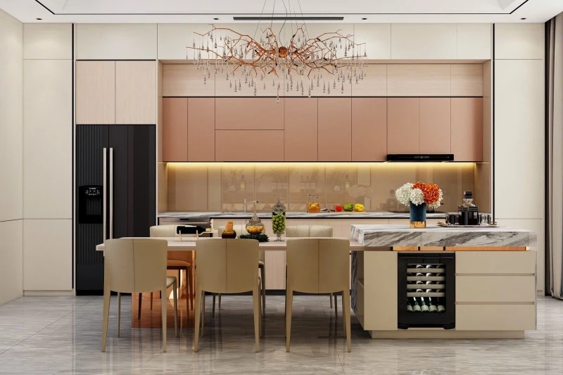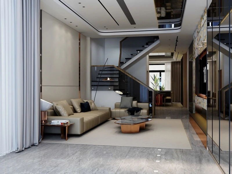 -Tầng 1: Khách, bếp.