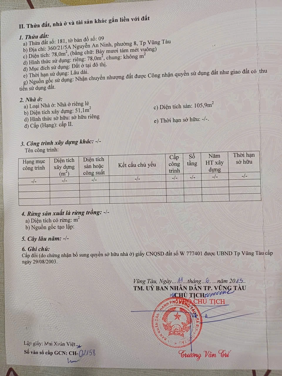 Cần bán gấp căn nhà tại vị trí đắc địa: Hẻm 512 Đường Trương Công Định, Phường 8, TP. Vũng Tàu. Thông qua hẻm 360 Nguyễn An Ninh