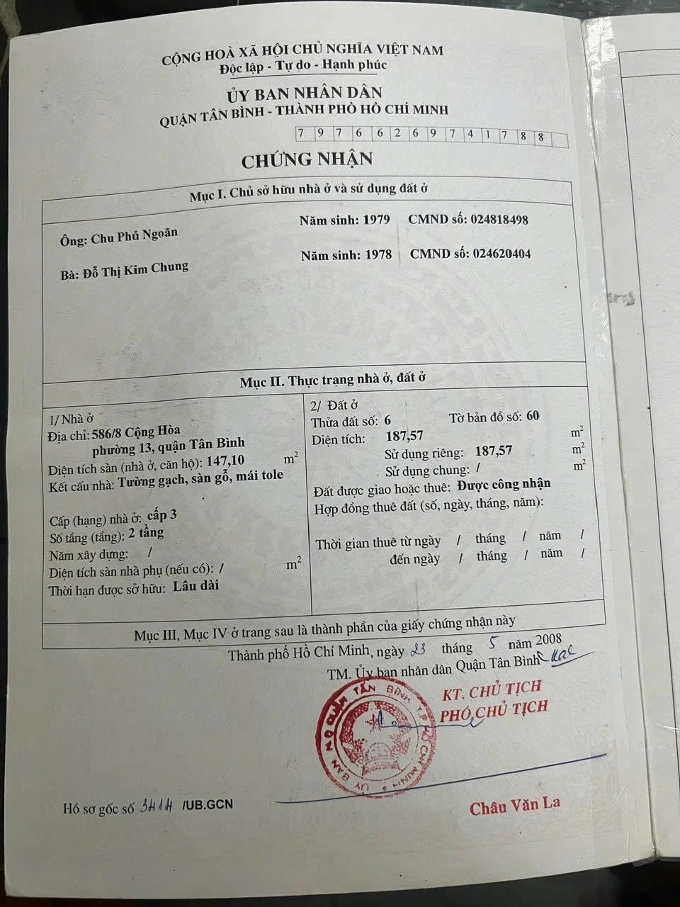 Chính Chủ Bán nhà HXH Cộng Hòa, P13, Q.Tân Bình. - DT: 6.2 x 30.5m, DTCN 187m2 - Kết Cấu: 3 lầu, 4PN, 4WC. - Pháp lý: Sổ Hồng, sang tên ngay. - Giá bán: 37 tỷ còn thương lượng. - LH: 091 116 0692 Ngô Tú. |