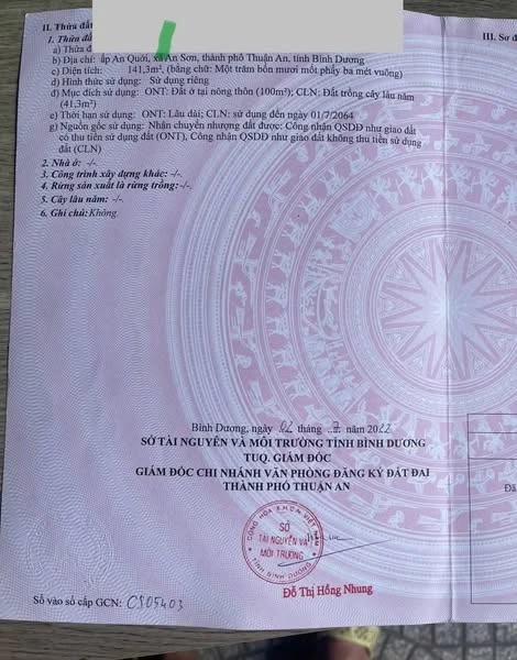 CHÍNH CHỦ GỬI BÁN LÔ ĐẤT AN SƠN TP THUẬN AN ,TPHCM ,