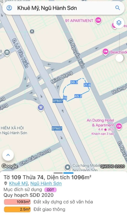| Tên dự án: CHUYỂN NHƯỢNG LÔ GÓC 3MT ĐƯỜNG MINH MẠNG VÀ LÊ VĂN HIẾN, KHUÊ MỸ | ||