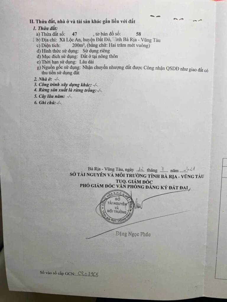 | Diện tích MB: 200 m2 | Diện tích SD: 200 m2 | Hướng: Không xác định |