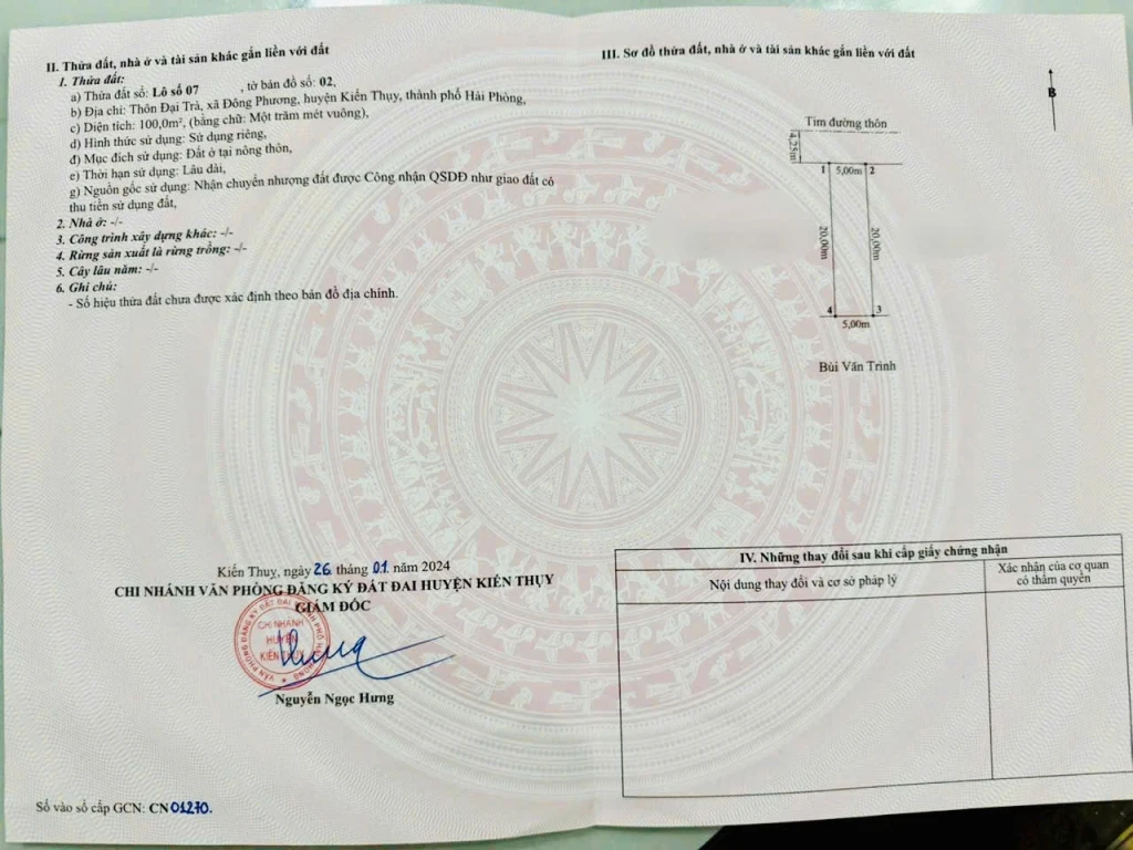| Chiều rộng: 0 m | Chiều dài: 0 m | Giấy tờ: Sổ Đỏ |