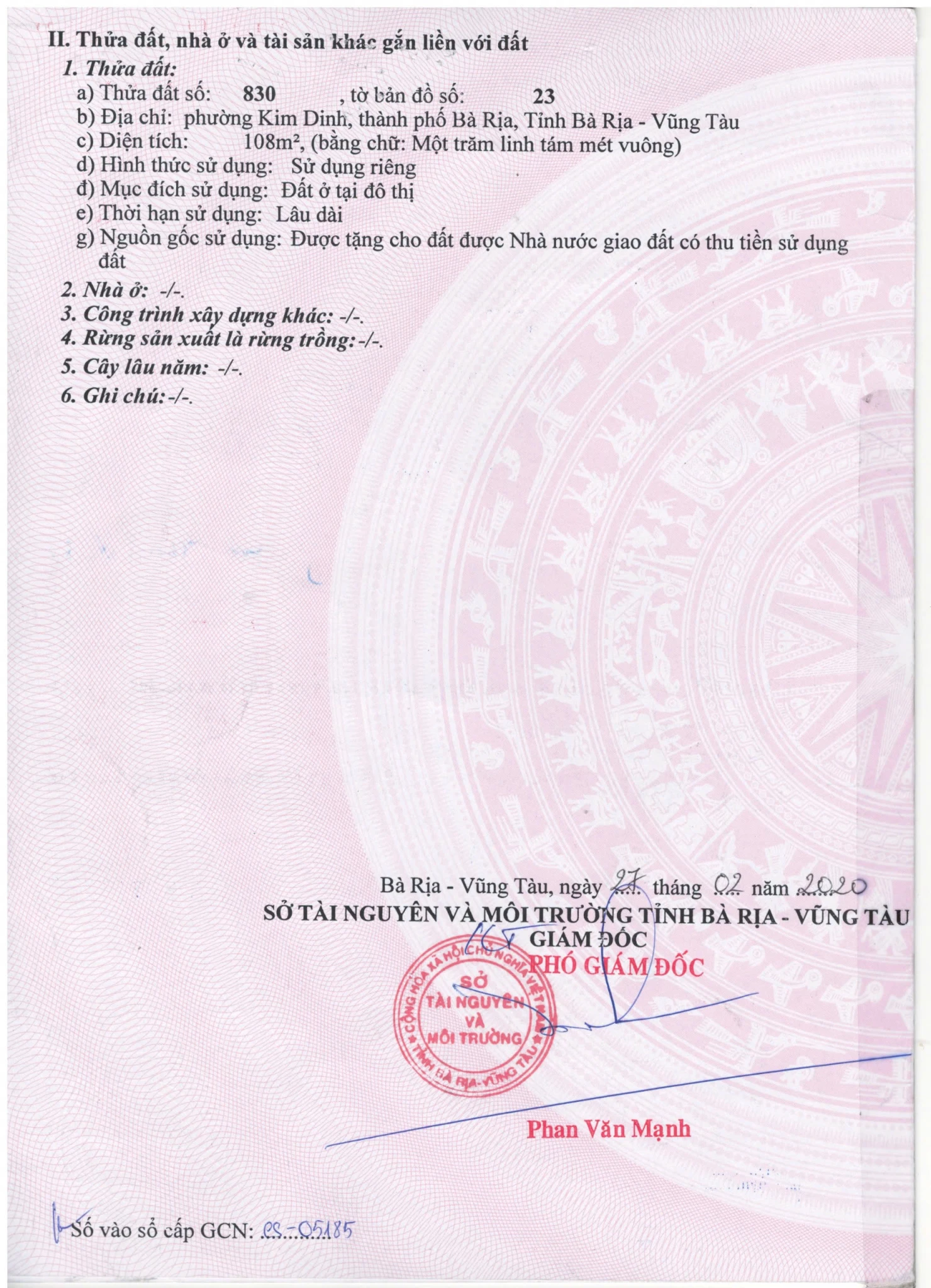 | Tên dự án: khu đô thị Đồng Nhân - Kim Dinh - Bà Rịa muốn bán. Diện tích 6x18 = 108 m2, | ||
