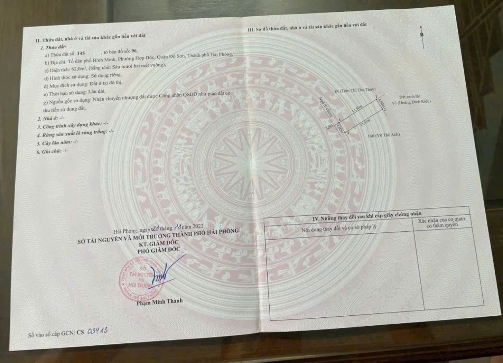 | Tên dự án: LÔ ĐẤT 62M² TUYẾN 2 BÌNH MINH – GIÁ CHỈ 6XX TRIỆU – HÀNG HIẾM NAM ĐỒ SƠN ZALO 0567 222 555 | ||