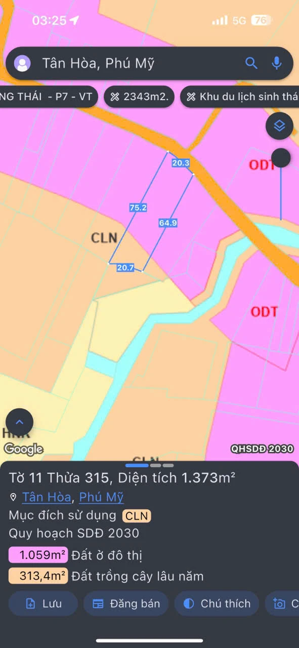Mặt tiền Đường Nhựa 6m xe hơi 🚗 khu bàn cơ thông tứ phía ♦️ DT : 1.373 m2 - ngang 20.2 x dài 68 ( Phân lô kinh doanh được 4 lô đất : 5x68 = 340m2 )