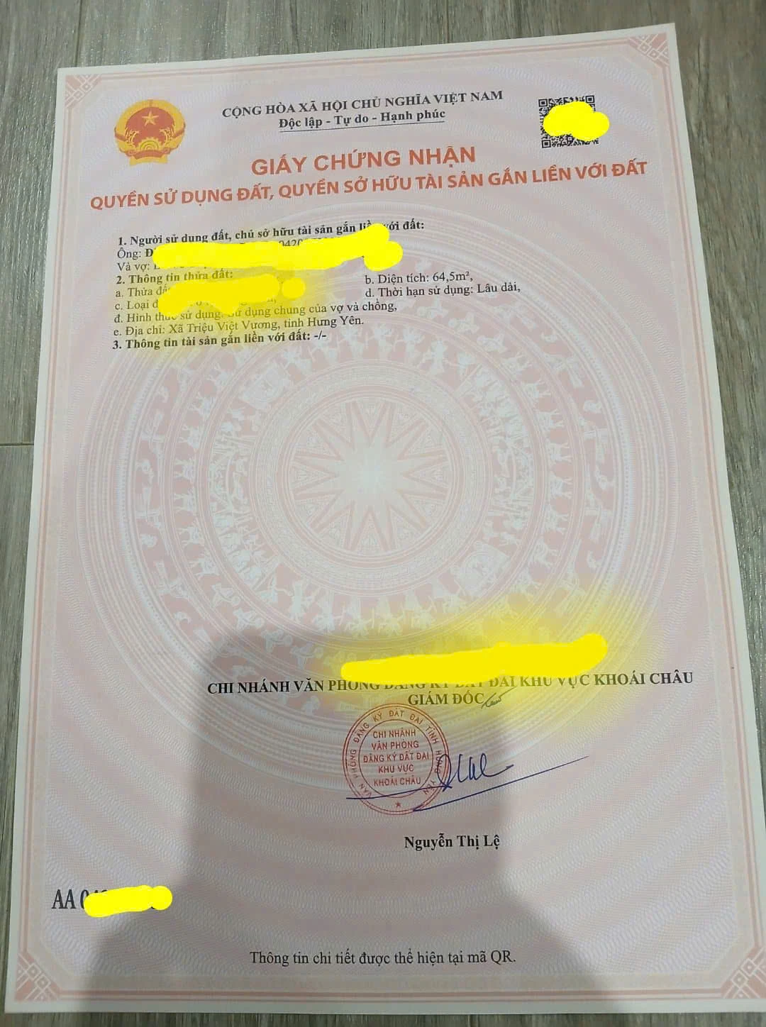 VỊ TRÍ ĐẸP - CẦN BÁN ĐẤT KHOÁI CHÂU, HƯNG YÊN - 65M2 - 1 TỶ 600 TRIỆU