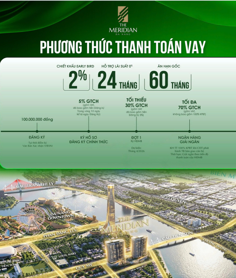 Căn hộ cao cấp The Meridian Da Nang 75 -95 Triệu/ m2